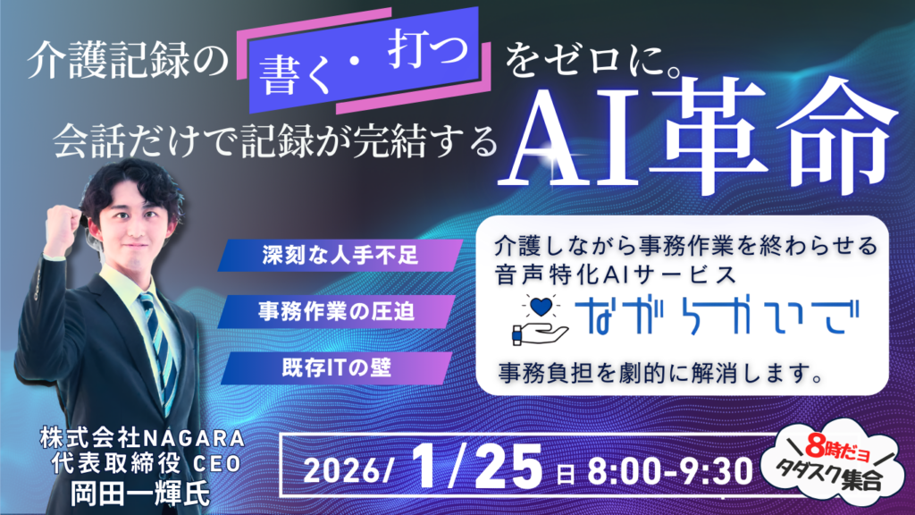 【2026/1/25】8時だョタダスク集合!!介護記録の「書く・打つ」をゼロに。会話だけで記録が完結するAI革命