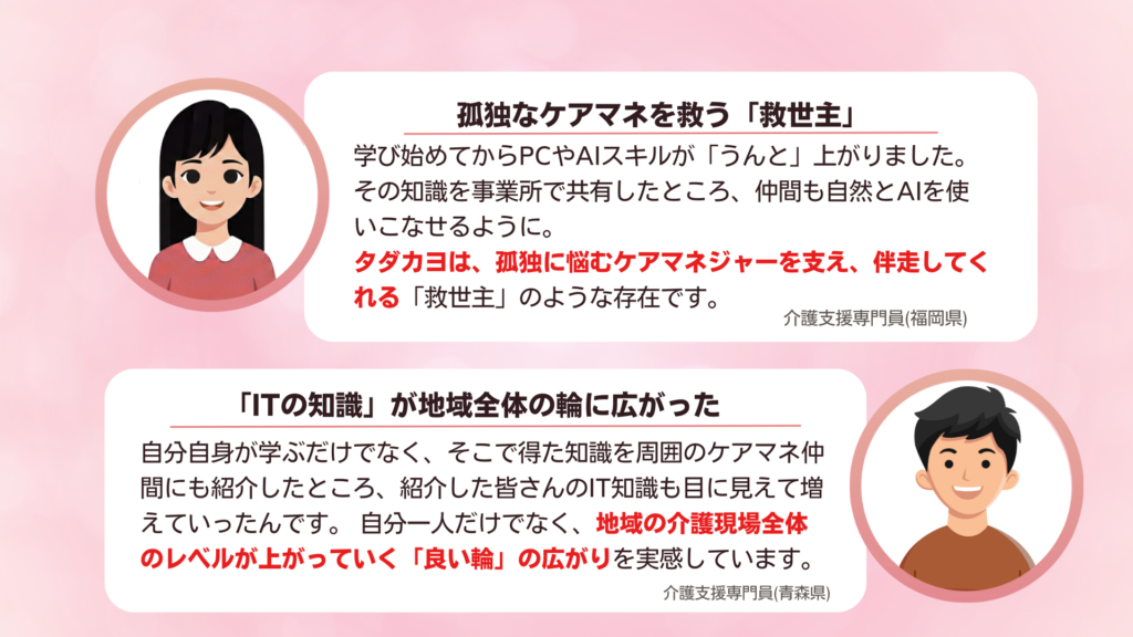 それは、法人の規模や地域の格差に関わらず、志あるすべての介護従事者が等しく最新の知識を手に取れる「学びのインフラ」でありたいからです。